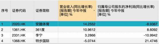 相比之下,361度无论是在营收还是净利润的增速方面,表现都较为均衡,营收增速达到10%,是安踏之后增速最快的公司,净利润增速也超过8%。